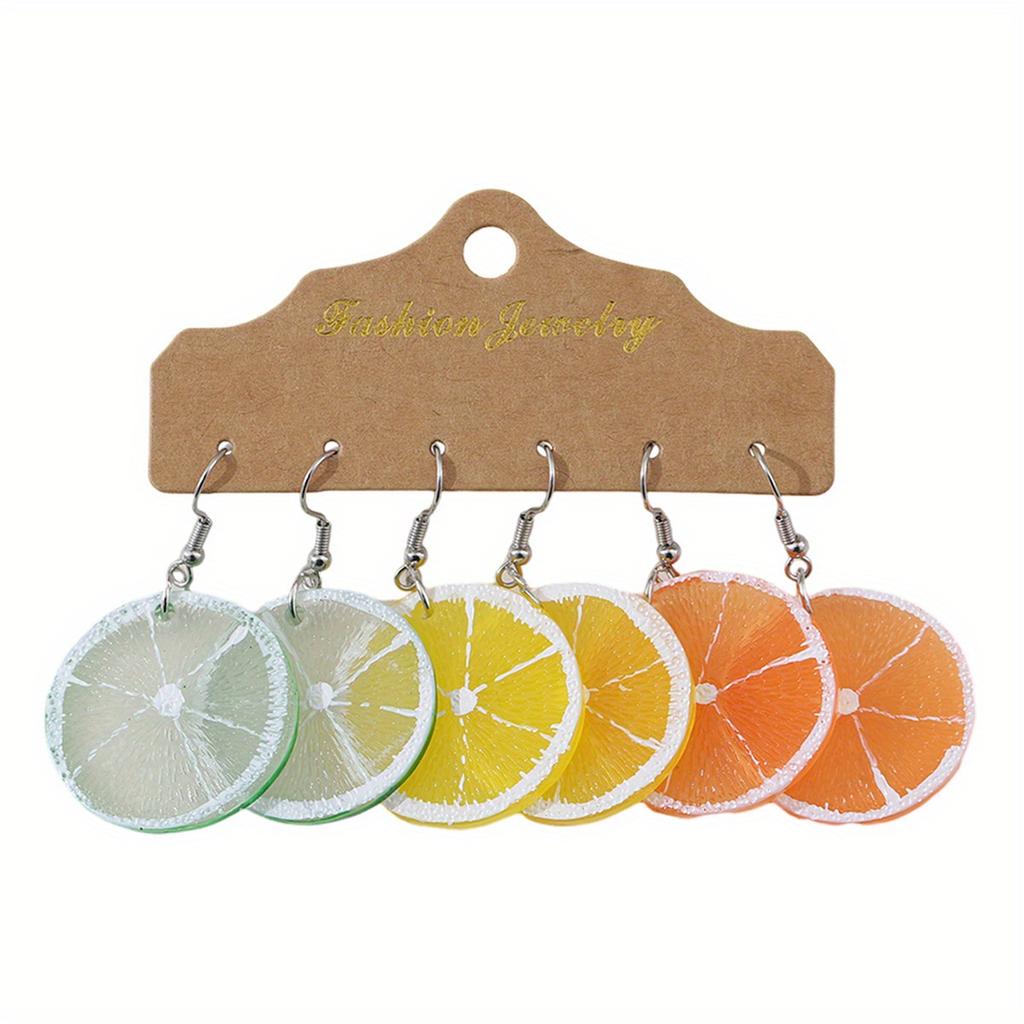 3 Pairs/Set Sliced Fruit Earrings , Tropical Summer Fun Style Earrings, Suitable for Daily Wear