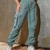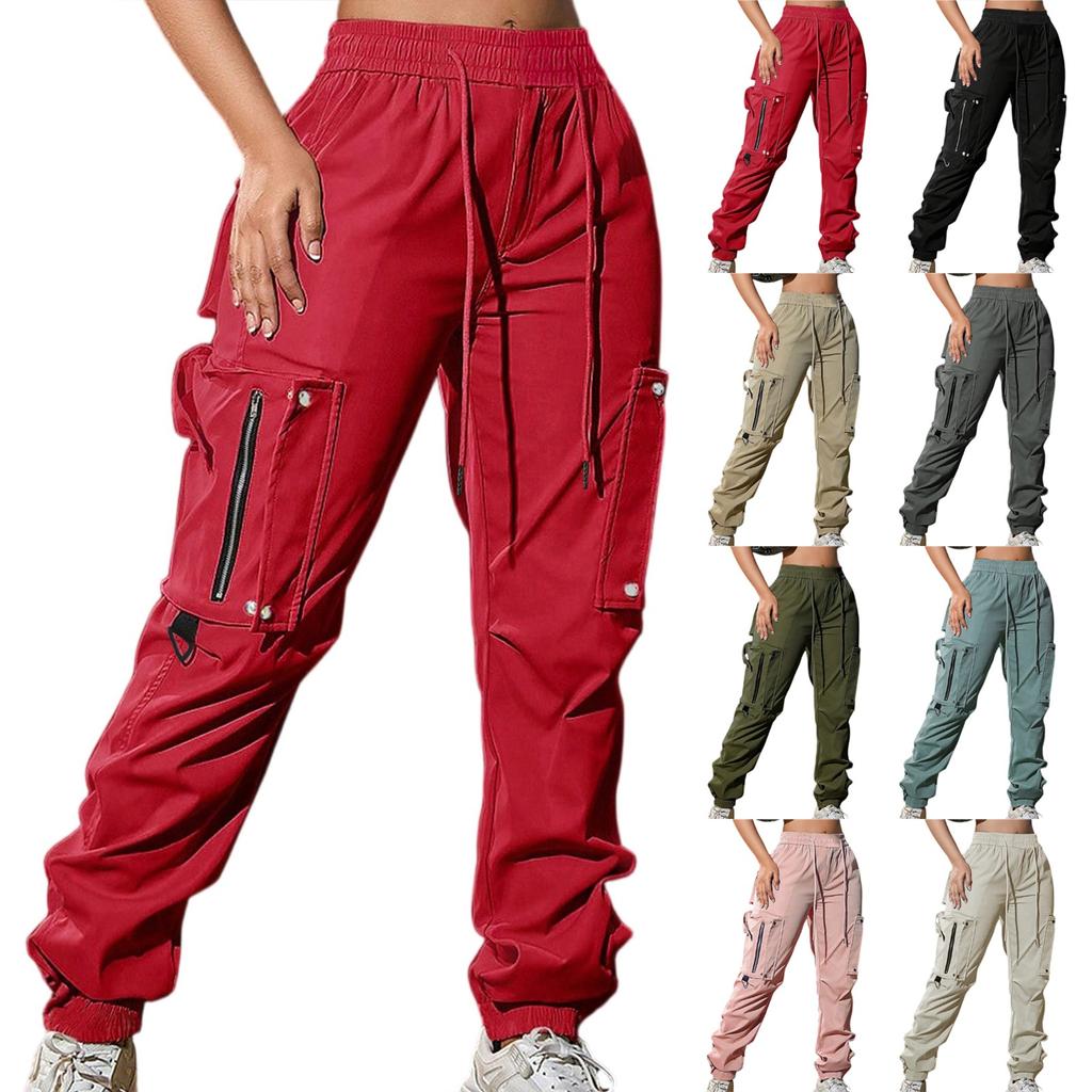 Women's Solid Color Work Pants, Sports Pants, Functional Pants, Pocket Drawstring Casual Pants