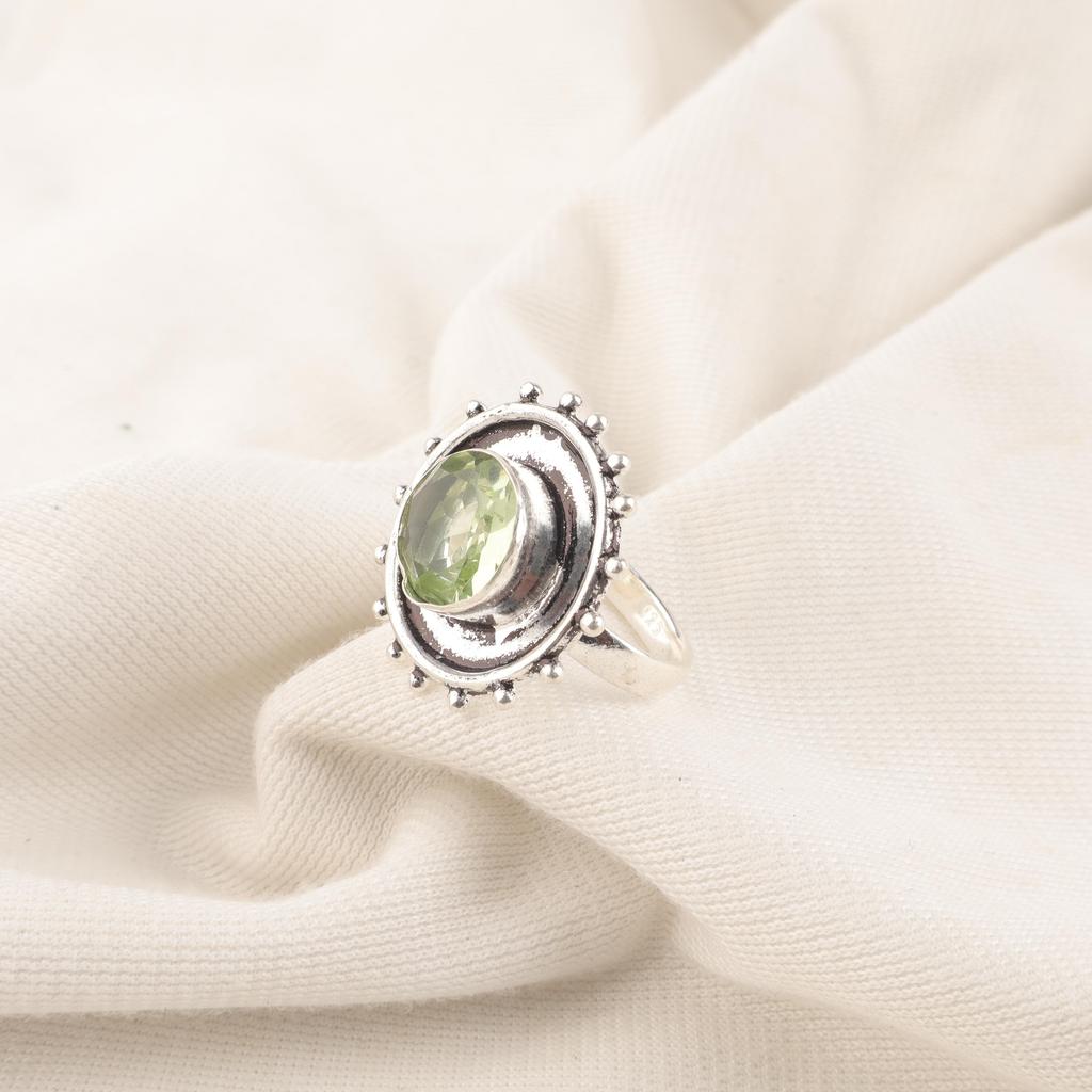 Green Amethyst Gemstone Ring Jewelry, Handmade Gorgeous Silver Ring, 925 Sterling Silver Jewelry For Wedding Gift