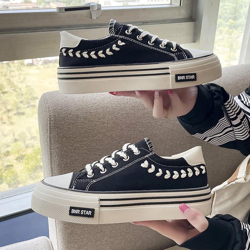 Canvas Shoes Women, Summer Casual Thick-soled Round Head White Shoes Low-top Student Board Shoes