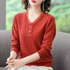 Women's Solid Fashion Lace Spliced T-shirt Spring Autumn Casual Elegant Long Sleeve V-Neck Female Knitted Thin Tops