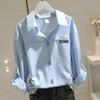 Fashion Patchwork Solid Color Blouse Spring Casual Long Sleeve All-match Women's Clothing Commute Polo-Neck Korean Button Shirt