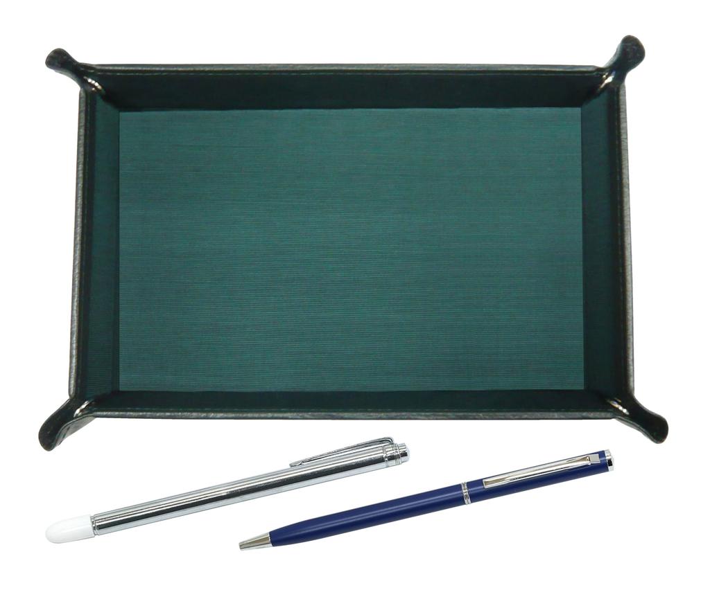 Japanese Moss Green Cowhide Pen Tray with Metal Pointer and Slim Rotating Ballpoint Pen Blue Set, TRAMG-701S-PD04-L