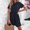 Women's Casual Round Neck Pleated Short Sleeve Dresses