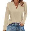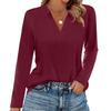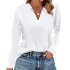 Women's Fashion Casual Lapel Short Long Sleeve Solid Color Shirt Women's V-Neck Tops