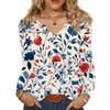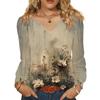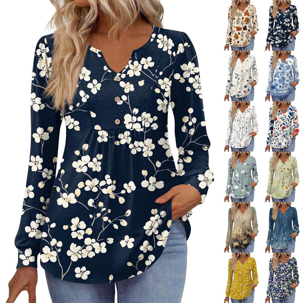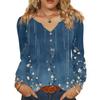 Women's Fashionable Casual V-neck Blouse Button Long-sleeved Pullover T-shirt Top