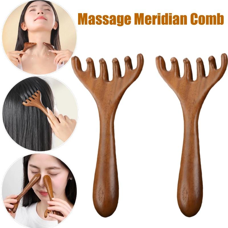 Pure Natural Six-Claw Head Massage Meridian Comb Health Care Wood Handle Tool for Lymphatic Scraping and Unblocking Artifact