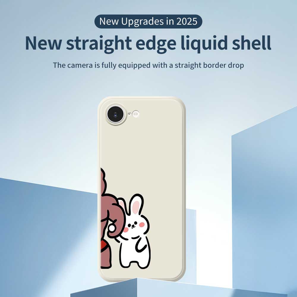 For iPhone 16e Case White Rabbit Pattern Printing Straight Edge TPU Phone Back Cover