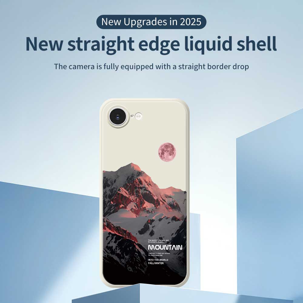For iPhone 16e Case Pink Snow Mountain Pattern Printing Straight Edge TPU Phone Back Cover