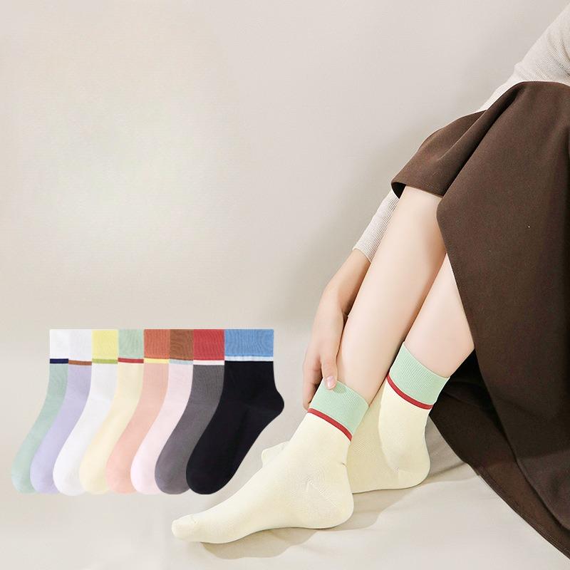 Female Spring and Summer New Simple Leisure Cotton Anti Bacterial Anti Odor Sweat Breathable Tube Socks