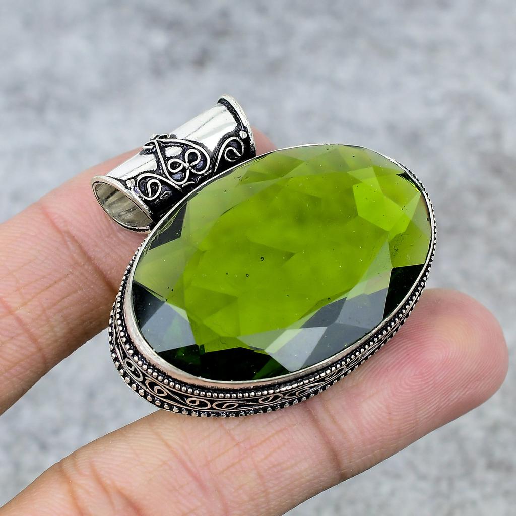 Peridot Gemstone Handmade 925 Steling Silver Jewelry Pendant 1.38" M-247