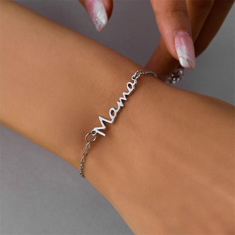 Simple Letter Mama Charm Bracelet for Women Metal 3 Colors Double Layer Chain Bangle Fashion Zircon Mother Day Wrist Gift