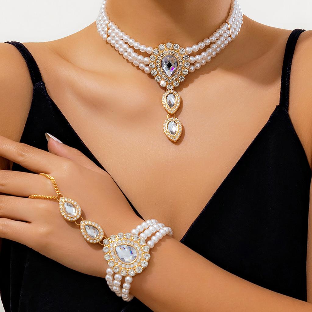 Multilayer Elegant Imitation Zircon Chain Necklace Bracelet for Women Creative Water Drop Rhinestone Zircon Set Wed Accessories