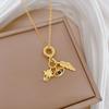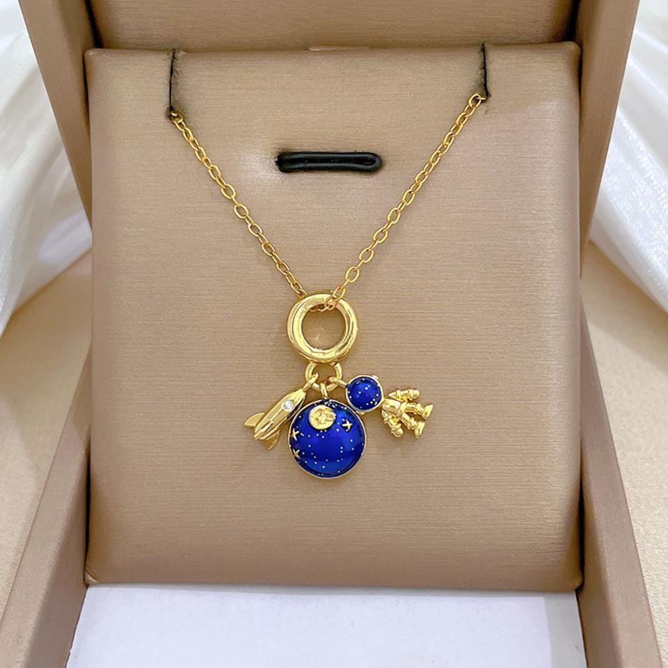 ZAKOL Gold Color Titanium Steel Chain Necklace Fashion Planet Astronaut Round Pendant Necklace Party Zircon Gift