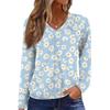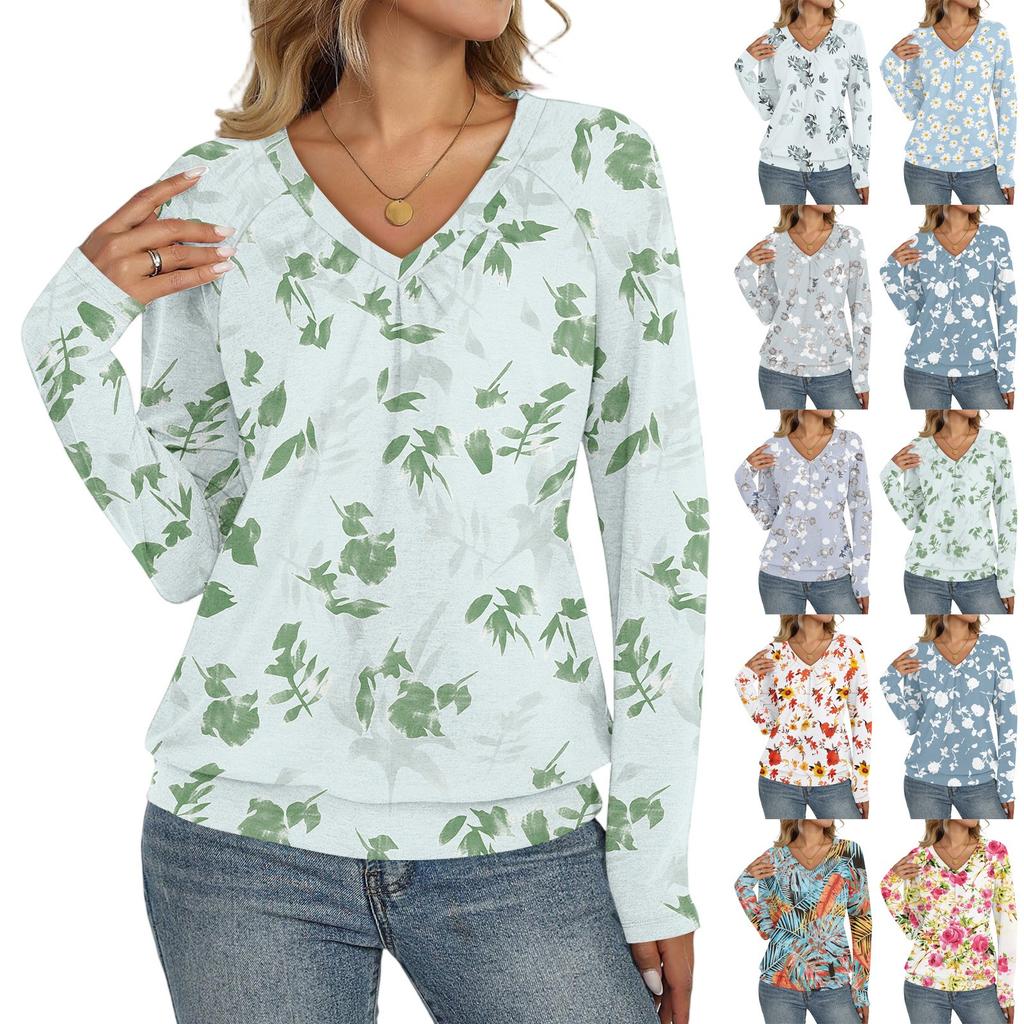 Women's Casual Fashion V-Neck Raglan Pleated Floral Print Long Sleeve Top