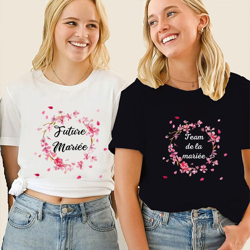 French Girls Bachelorette EVJF Party Tshirt Women Y2k Graphic Tops Team Future Bride T-Shirt Single Farewell Bridal Wedding Tees