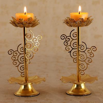 1Pair Iron Lamp Home Table Centerpieces Lotuss Desk Advents Candle Holder Butter Lamp Lotuss Candle Holder