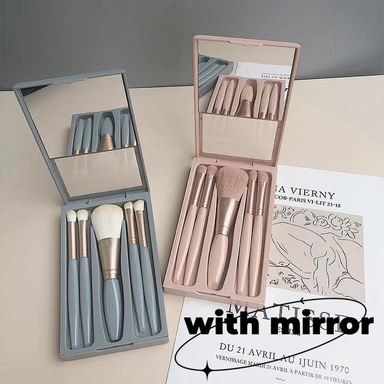 5pcs Makeup Brushes with Mirror Eyeshadow Loose Powder Brushes Mini Multifunctional Makeup Brushes