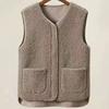 Fashion V Neck Sleeveless Loose Women Tank Tops Elegant Casual Zipper Cardigans Vest Plus Size New Autumn Winter Solid Color Pockets Clothing