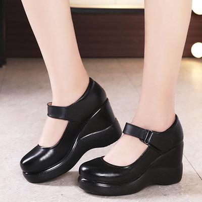 8cm Small Size 32-43 Thick Bottom Shallow Platform Wedges Shoes T Strap Pumps 2025 Fall High Heels Shoes Women Office Mom Dance