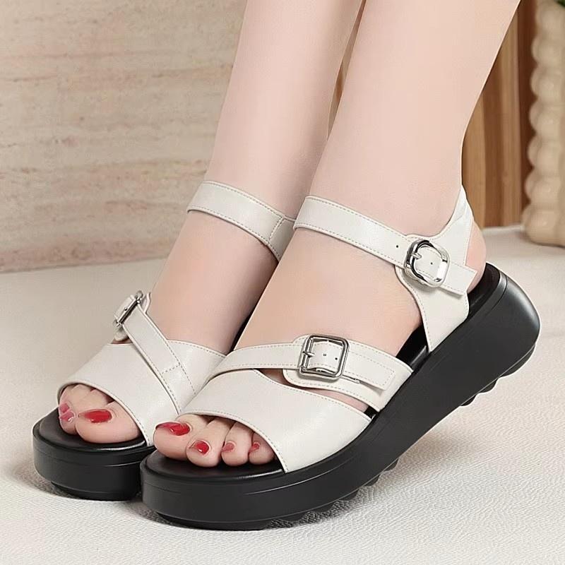 5cm Fashion Comfortable Genuine Leather Sandals Flat Platform Shoes 2025 Women's THick Bottom Sandals for Office Mom Beach