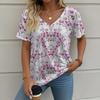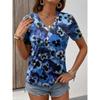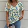 Women's Summer T-shirt Plant Flower Print Retro Fashion Casual Short-sleeved Street V-neck Women's Clothing