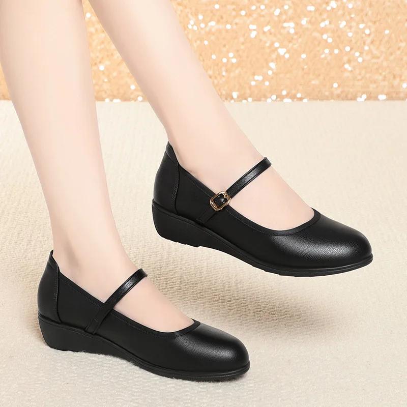 3.5cm Fashion Breathable Shallow Mouth Soft Leather Platform Wedges Shoes Women Fall 2025 Flat Heels Mary Janes for Office Mom