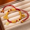 Ancient-style Sand Gold Bracelet God of Wealth Round Brand Red String Bracelet for Men and Women Rich and Powerful Bracelet