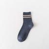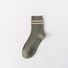 Men's Mid-calf Socks Spring and Autumn Two-bar Solid Color Cotton Socks Breathable Striped Men's Autumn and Winter Double-needle Long Calf Socks