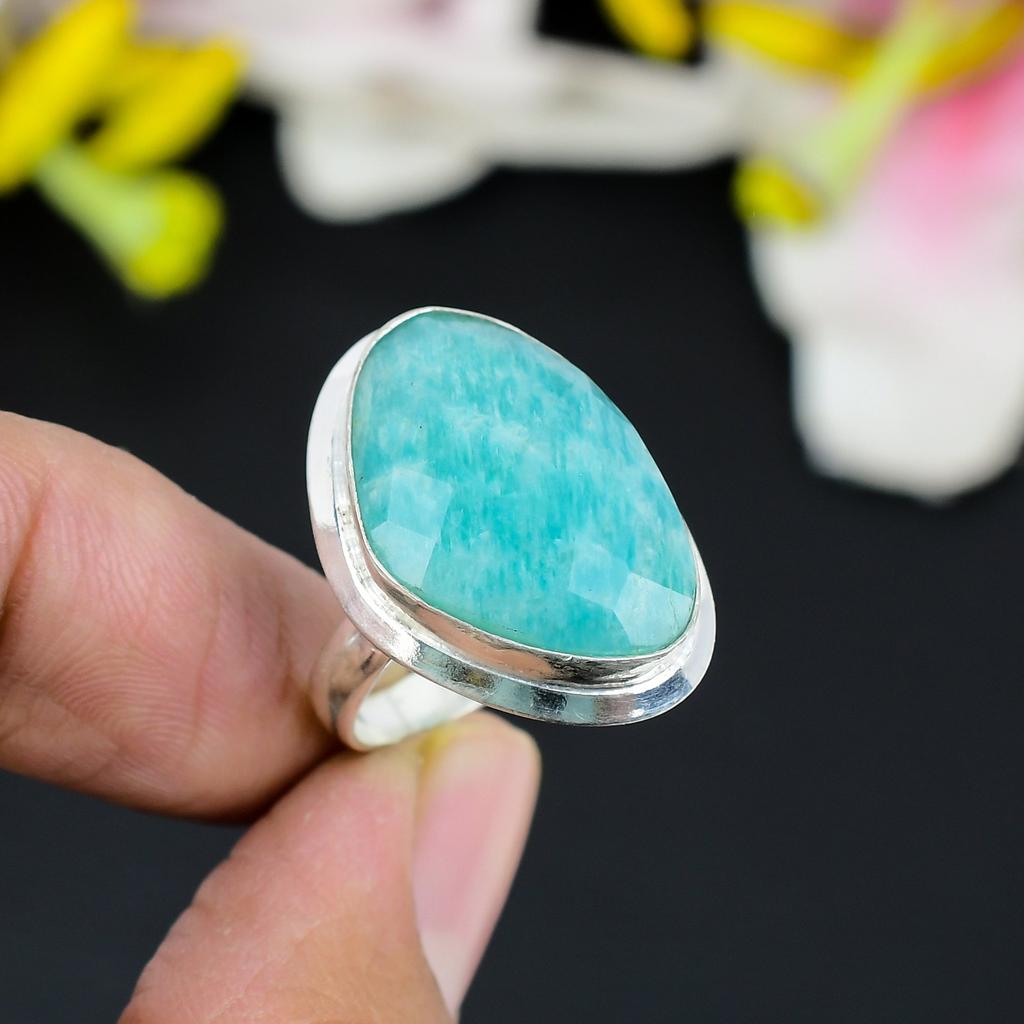 Amazonite Gemstone Handmade 925 Sterling Silver Jewelry Ring Size 7.5 KG-333