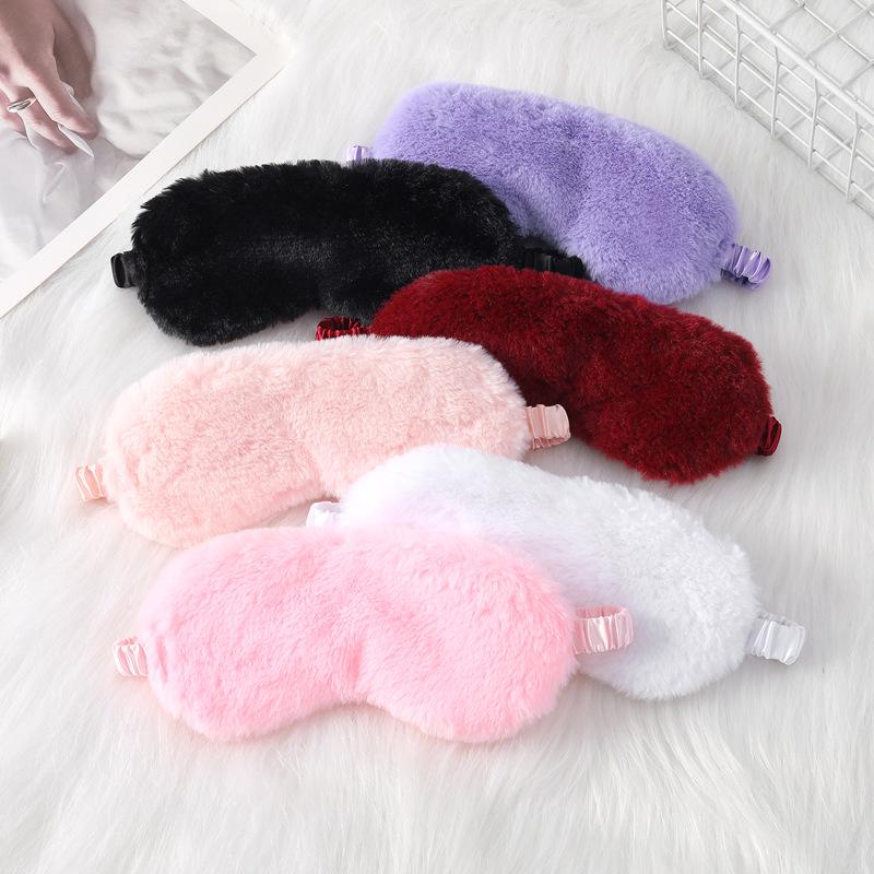 Blackout Rabbit Fur Sleep Mask - Soft, Breathable, Skin-Friendly, Plush Imitation Silk for Autumn/Winter Eye Protection.