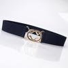 Japanese Minimalist Black Elastic Waist Belt for Women - Slimming Waistband with Round Ring Interlock