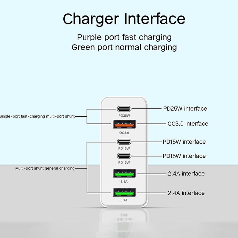 160W 6-Port Fast Charging Usb Type C Quick Charge Pd Qc3.0 Wall Charger Adapter For Iphone Xiaomi Samsung Huawei Phone Charger