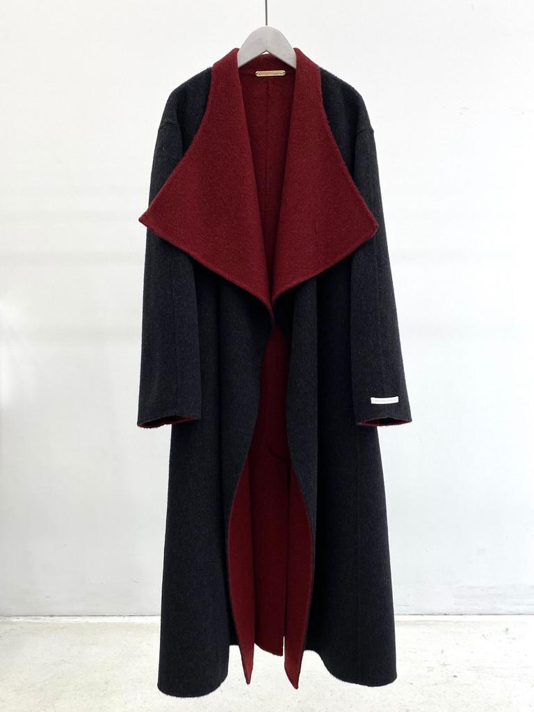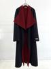 Black and Red Color Matching Elongated Large Lapel Double-sided Wool Coat Lazy Simple Temperament Belt Long Autumn and Winter Women