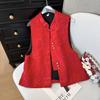 2025 High-end Festive Mother Vest Temperament Stand-up Collar Jacquard Button-up Top Vest