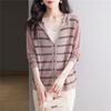 Striped Hooded Sun Protection Cardigan for Women Loose and Slimming Knitted Shirt Sweater