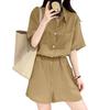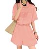 ZANZEA Women Summer Turn Down Collar Short Sleeve Drawstring Jumpsuits Overalls