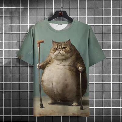 Cat Print T-shirts for Men Casual Short Sleeved Tee Oversized Mens Clothing Men's Funny T-shirt Animal Print Graphic T Shirts