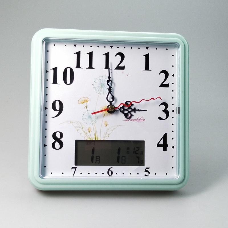 Wall Clock Dual Purpose Quartz Clock Simple Square Clock with Electronic Clock Lunar Calendar Display