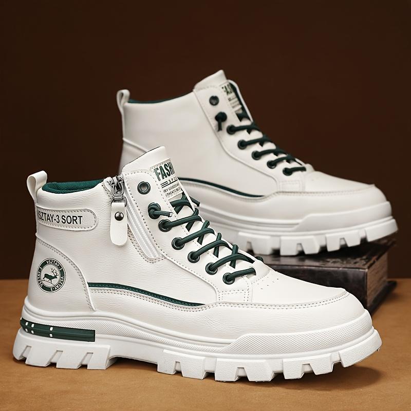 Men's Vintage Casual Sports Boots, Solid Color Mid-Top Lace-Up with Plain Toe, Faux Upper,Fabric Inner, PVC Sole, EVA Insole for All-Season Daily Wear