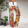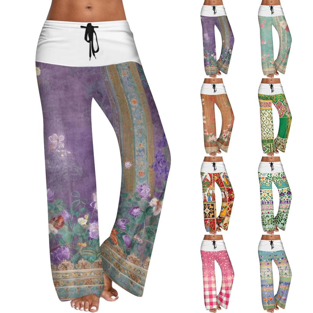 Women's Drawstring Elastic Waistband Wide Leg Color Matching Floral Printed Casual Pants