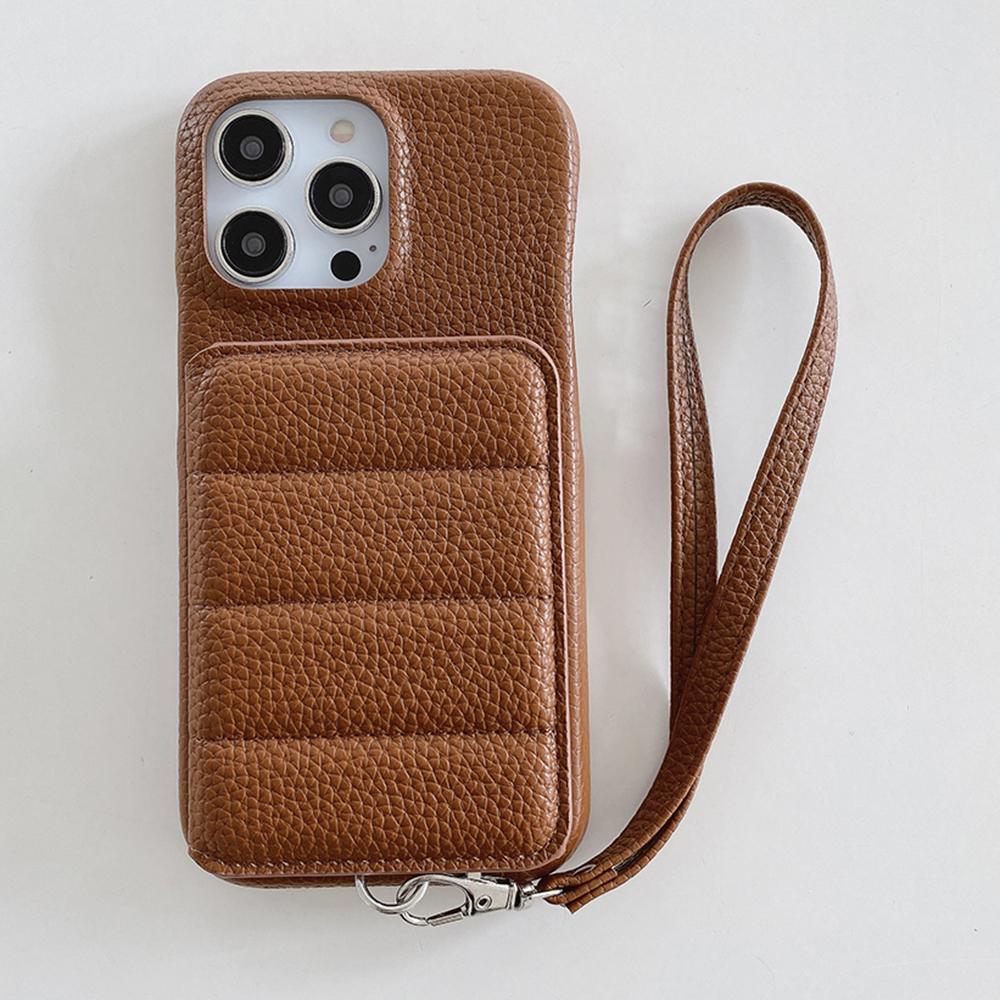 For iPhone 15 Pro Case Card Slots Kickstand PU Leather+PET Phone Cover with Wrist Strap