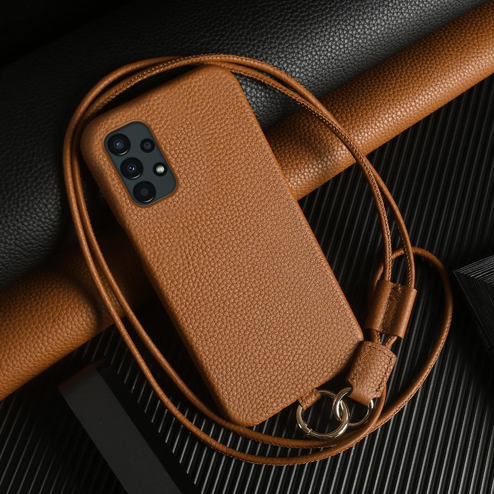 For Samsung Galaxy A13 4G Case with Lanyard Genuine Cow Leather PC Phone Back Cover