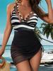 Women's Sexy Tummy Control Mesh One-Piece Swimsuit - Halter Neck V-Neck Crisscross Top & Ruched Skirt , Bathing Suit, Beachwear Essentials, Swimwear