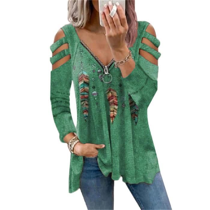 Blouse Sans Bretelles à Fleurs - Marque - Modèle - Col en V - Ourlet Ample - Tunique Rétro - Léopard vert