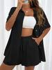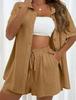 This Women's Solid Color Short Sleeve Casual Shirt & Shorts Set is a loose and stylish two-piece outfit crafted from high-quality cotton. Featuring a solid pattern and designed with convenient pockets, this set combines comfort with a sportive style. Perfect for casual outings, it offers a relaxed yet chic look.