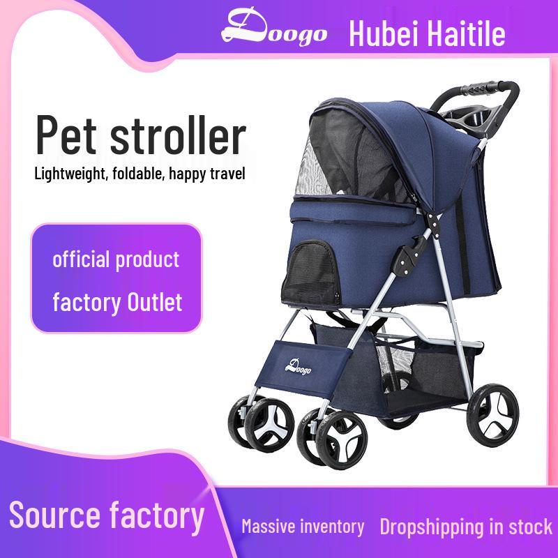 Foldable Lightweight Pet Stroller for Cats and Dogs - Four-Wheeled Design