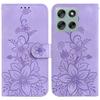 For Motorola Moto G56 5G Stand Case Lily Flower Imprint Leather Phone Cover with Wrist Strap
