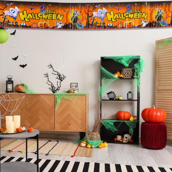 Suitable for home decor, festivals, parties, offices, gifts, dormitories, and more, this banner is a versatile and eye-catching addition to any space. Elevate your Halloween celebrations with this stylish and easy-to-use decoration!