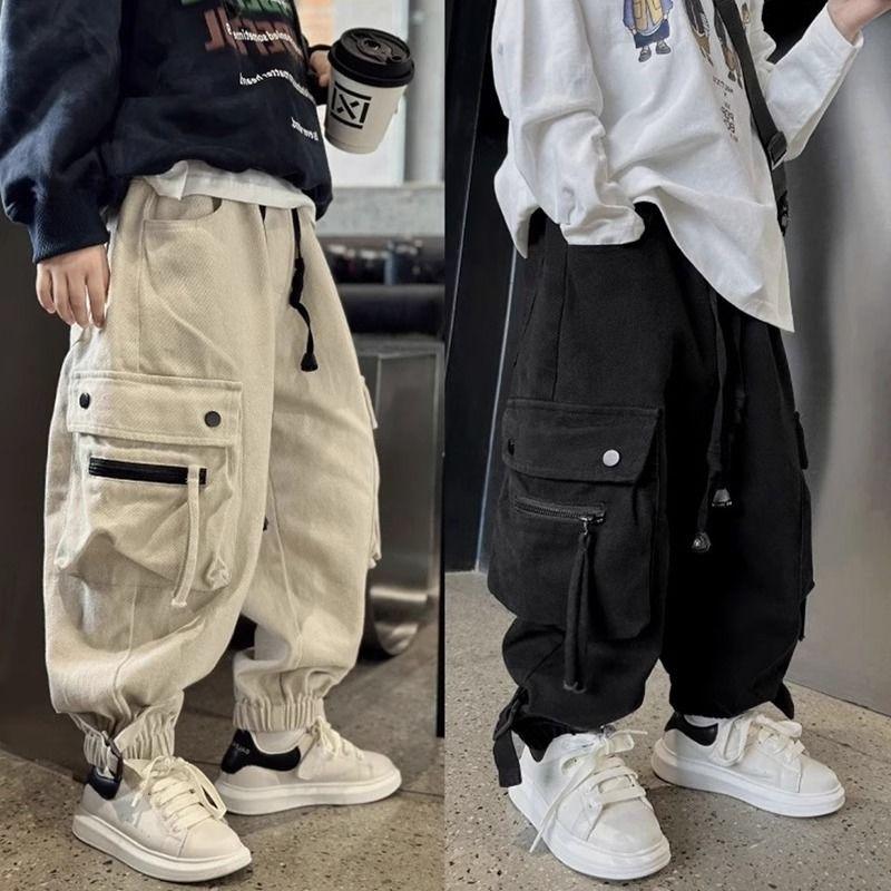 Boys Casual Cargo Pants Spring Autumn Big Kids Sport Long Pants Teenage Streetwear Baggy Trousers Children Fashion Joggers Pants